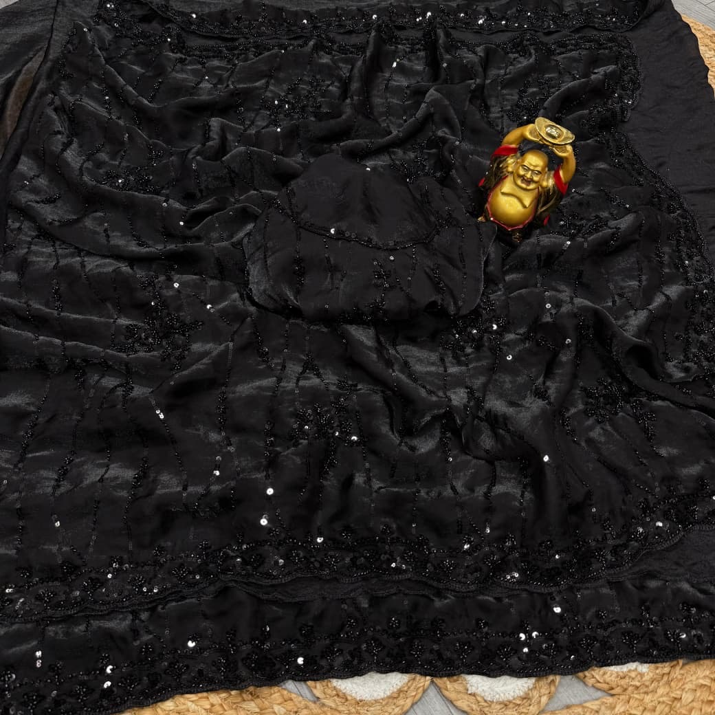 *On pure space silk sarees in velvet shine adorned with sequence and cutdana delicate handwork*