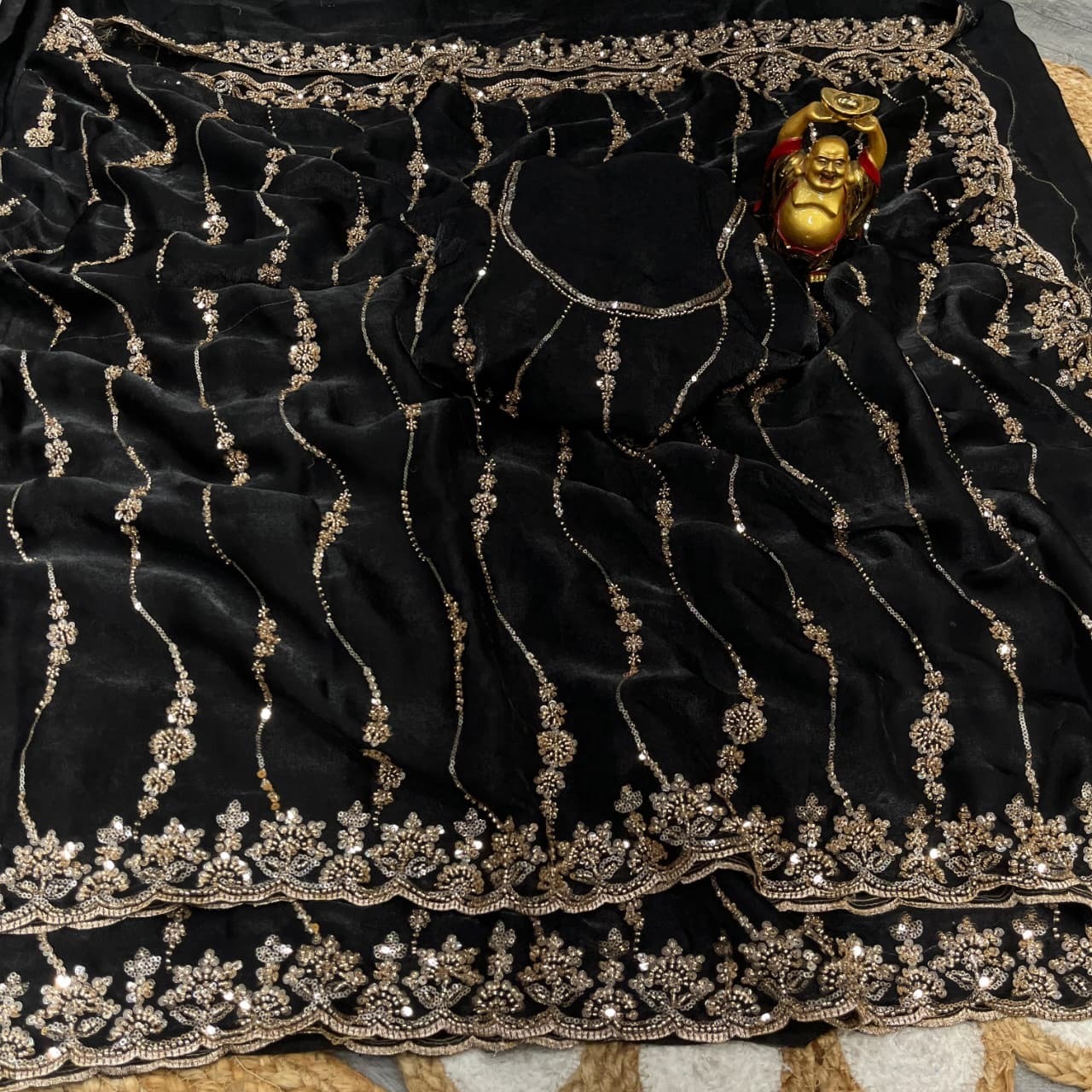 *On pure space silk sarees in velvet shine adorned with sequence and cutdana delicate handwork*💞💞