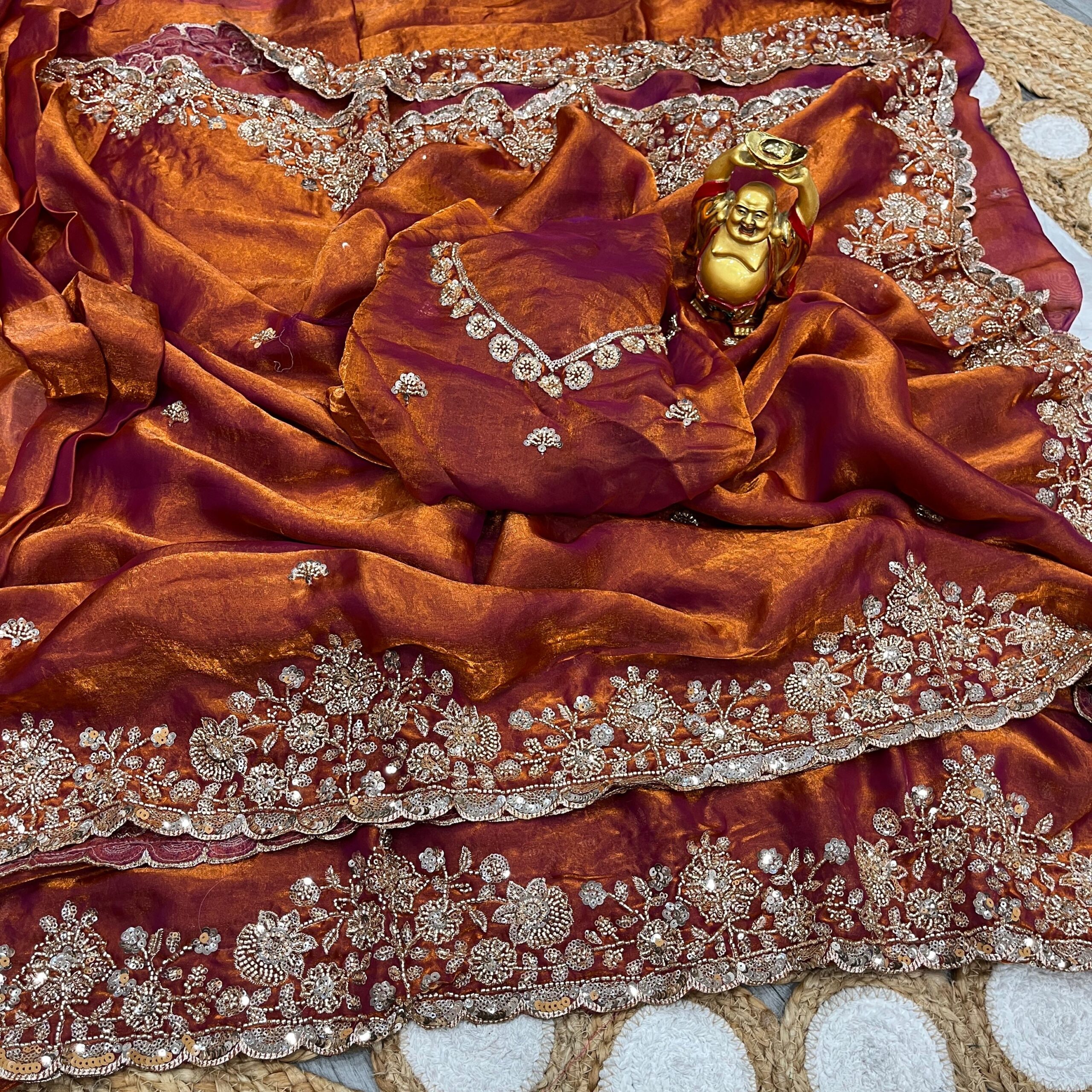 Saree comes with original gold beeds work