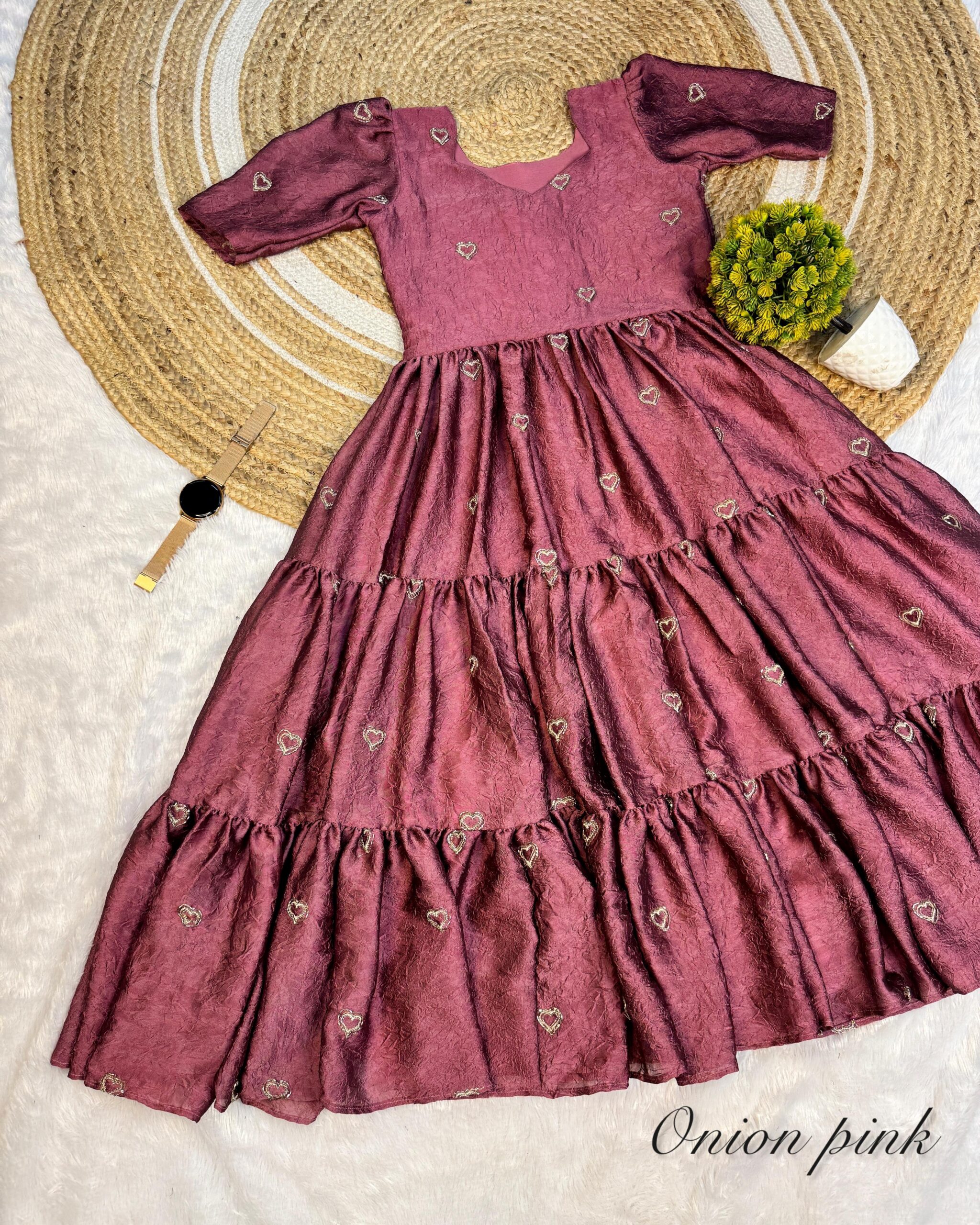 Designed to Make you feel Like a Queen. This perfect gift for your this heart’ gown made with premium blooming Rangoli crush silk fabric With beautiful heart beads and embroidery work all over gown