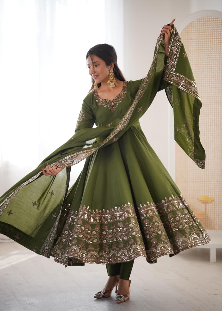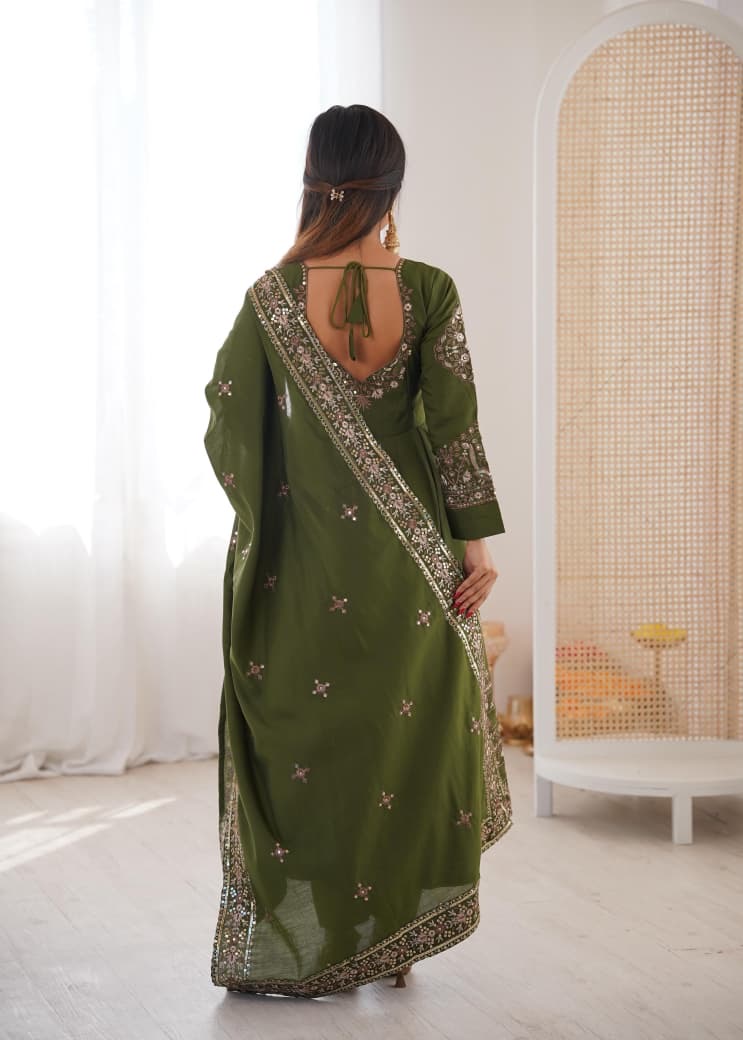 *Elegant Embroidered Sequence Designer Anarkali Three Piece Set”*