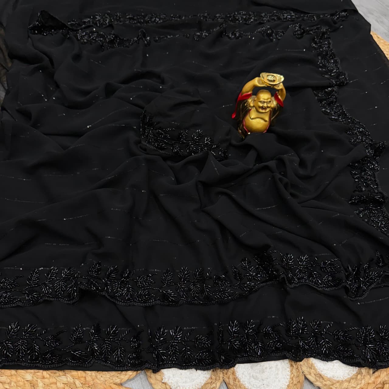*On pure Georgette sarees in velvet shine adorned with sequence and cutdana delicate handwork*