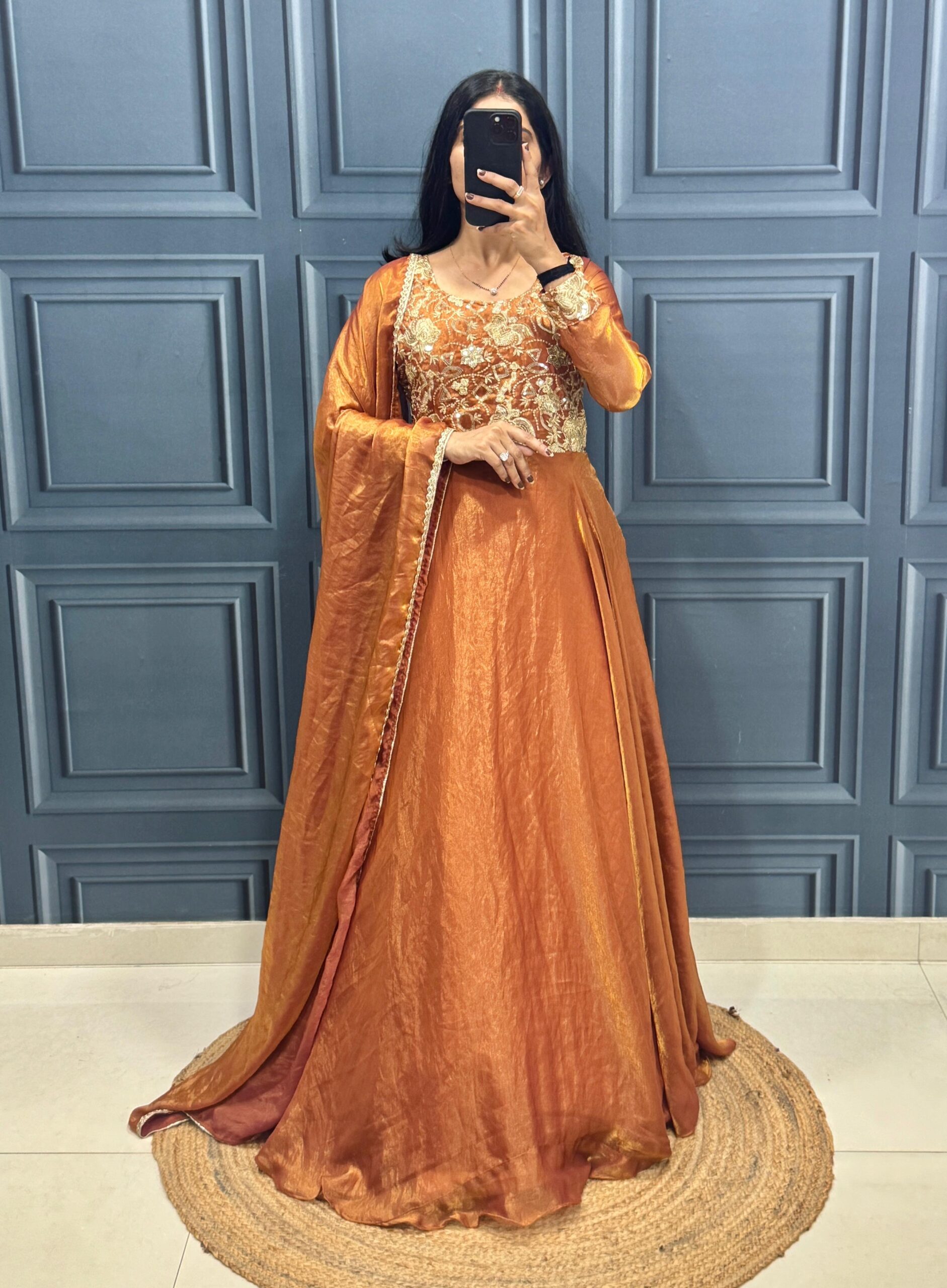 *This Beautiful Gown Duptta made for soft and shiny fandy silk with attractive embroidery sequins work and Duptta with lace work with Full lining*